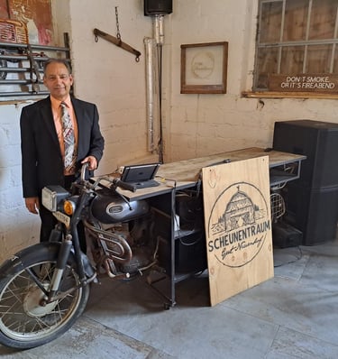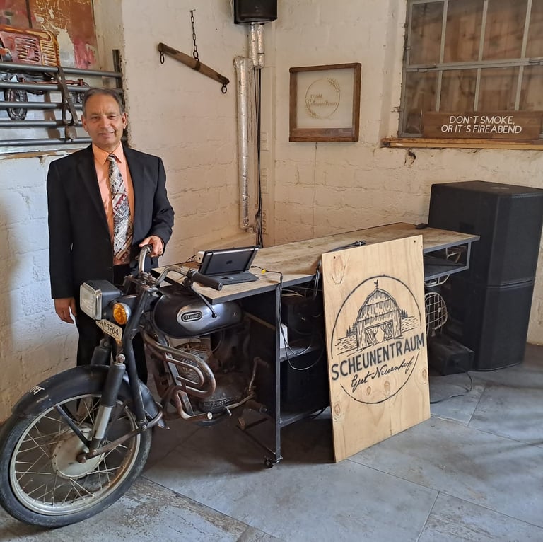 MR. Harbhajan Ghuman standing with his Countryman Rajdoot in Aachen, Germany