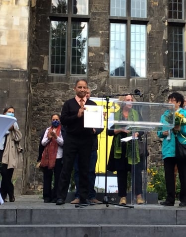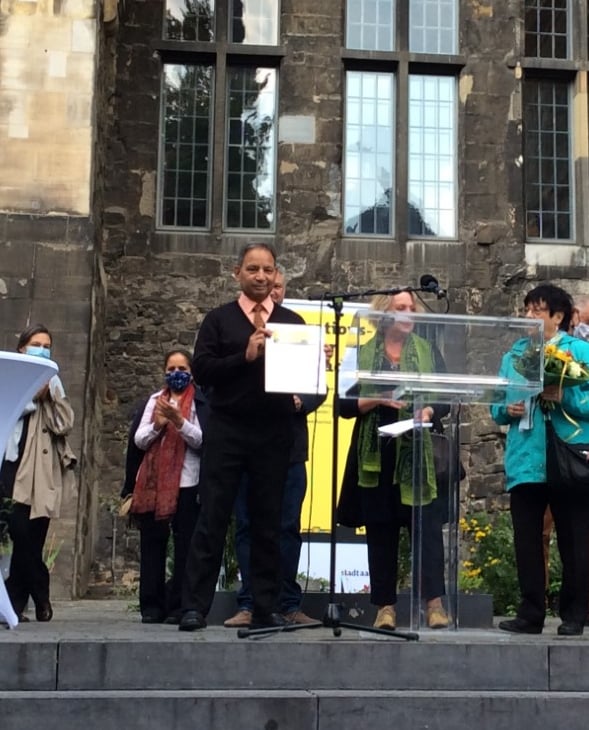 Mr. Harbhajan Ghuman accepting the Integrations Prize in Aachen, Germany. 2020.